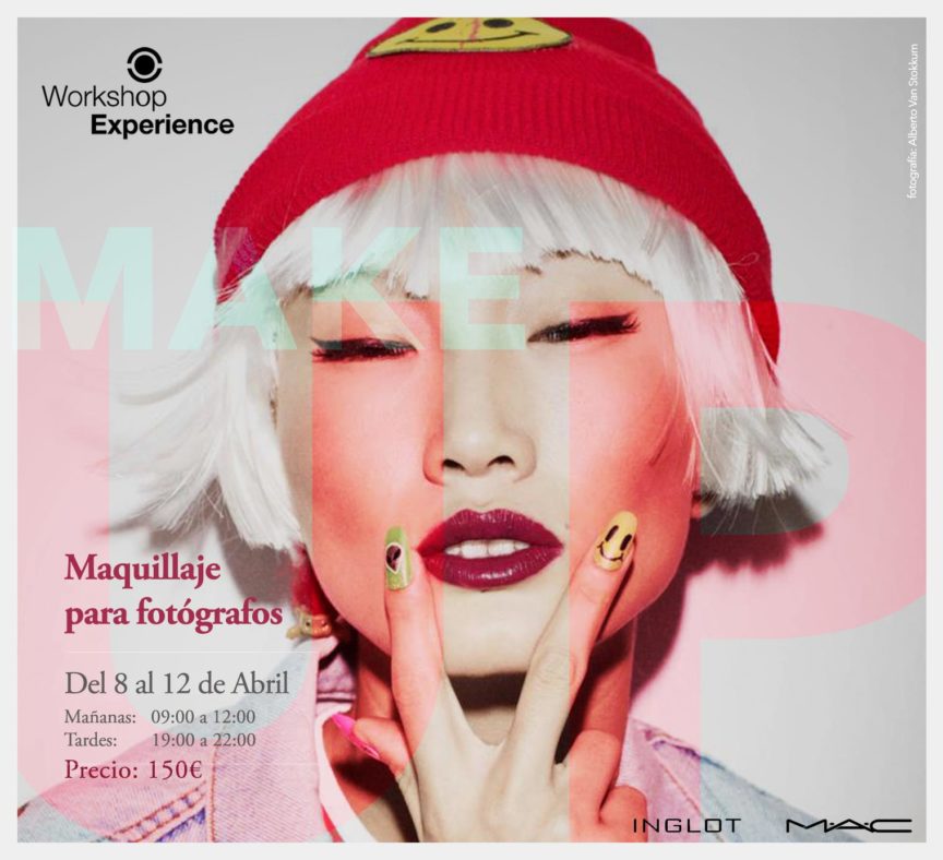 Workshop Experience Make up organiza un curso intensivo de una semana en horario de mañanas y tardes: De 9:00 a 12:00 o de 19:00 a 22:00 15h en total Precio 150€ (los asociados AFP se beneficiarán de un 10% de descuento) Información y reservas: 912 382 312 / alberto@workshopexperience.com Más información