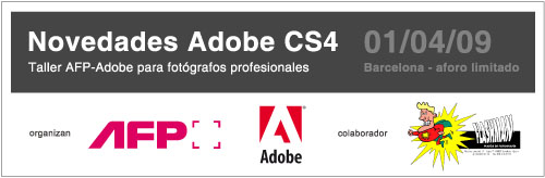 El próximo miércoles 1 de abril organizamos junto a Adobe, en el marco del “Adobe CS4 Tour”, un taller para presentar las dos principales novedades de Adobe CS4 dirigidas a fotógrafos profesionales: Photoshop y Lightroom. El programa del taller será el siguiente: 09:45 – Inscripciones 10:00 – Presentación novedades Photoshop CS4 10:50 – Preguntas 11:00 – Presentación Lightroom 2.3 11:50 – Preguntas