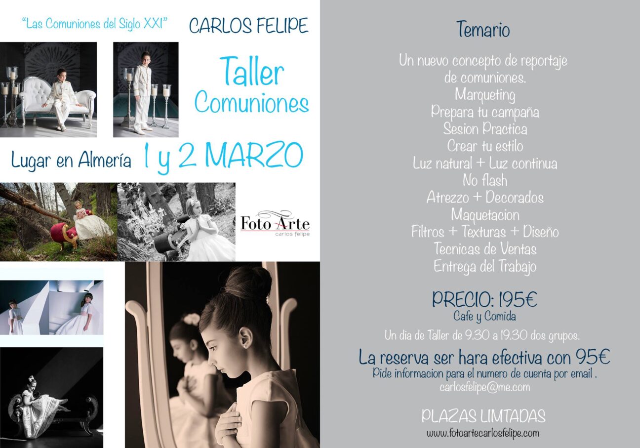 Nuestro asociado Carlos Felipe Ortiz, presenta el nuevo taller de comuniones que imparte los días 1 y 2 de marzo en Almería. Más información: carlosfelipe@me.com Los asociados AFP podrán beneficiarse de un descuento del 10% del precio del taller.