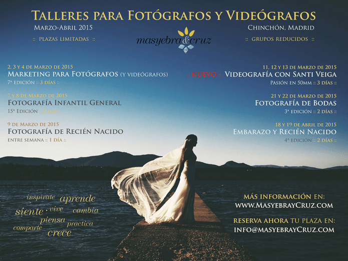 Talleres de Marketing, Infantil, Recién Nacido, Bodas y Videografía dirigidos tanto a fotógrafos como videógrafos profesionales que deseen mejorar sus técnicas, como a aficionados avanzados que deseen vivir de su pasión en un futuro próximo.