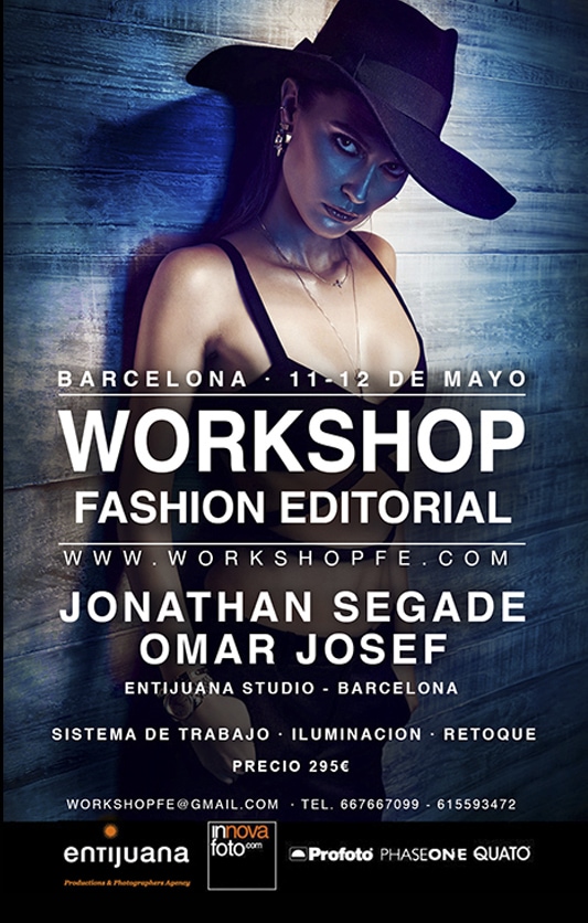Los días 11 y 12 de Mayo Workshop Fashion Editorial presenta por primera vez en Barcelona su Workshop de la mano de Jonathan Segade y Omar Josef. Ambos destacan en la fotografía de moda y retoque respectivamente, mantienen una estrecha y fructífera relación profesional que les ha llevado a publicar en revistas como: Amica, Telva, L’Officiel o Vanity Fair. Sin duda, son dos de los profesionales españoles con mayor proyección internacional.